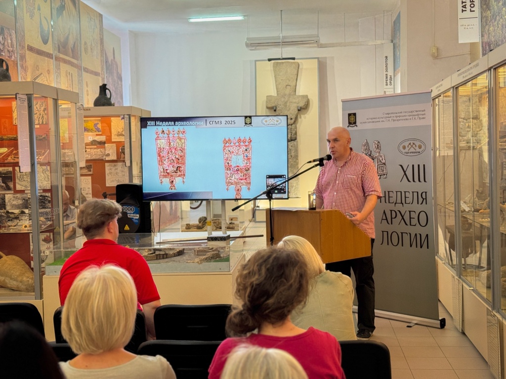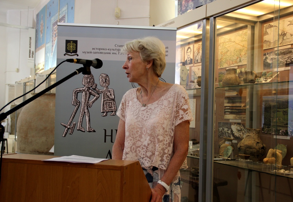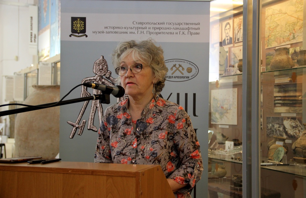 Кандидат исторических наук, старший научный сотрудник отдела этнографии Ставропольского музея-заповедника И.М. Назарова выступила с докладом о предметах традиционной женской одежды народов Северного Кавказа из коллекции Г.Н. Прозрителева. Ирина Михайловна рассказала, предметы каких народов есть в коллекции, познакомила с технологией их изготовления и историей поступления предметов в музей.