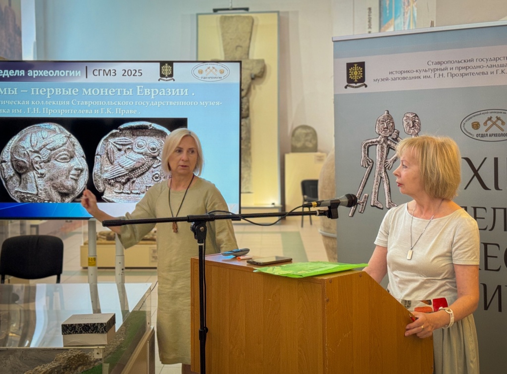 Главный научный сотрудник отдела фондов Ставропольского музея-заповедника Е.Г. Барабанова подготовила доклад о драхмах из нумизматической коллекции музея. Елена Георгиевна рассказала историю возникновения и развития счетно–весовой системы от Вавилона до Древней Греции и Парфянского царства. Елена Георгиевна рассказала, где и когда появились первые монеты, как повлиял Александр Македонский на денежное обращение, и когда афинская чеканка стала самой влиятельной.