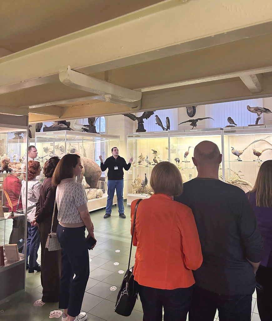В завершении мероприятия заведующий депозитарно-выставочным отделом Виктор Дмитриевич Бабенко провел для гостей экскурсию по экспозициям музея и рассказал об истории учреждения.