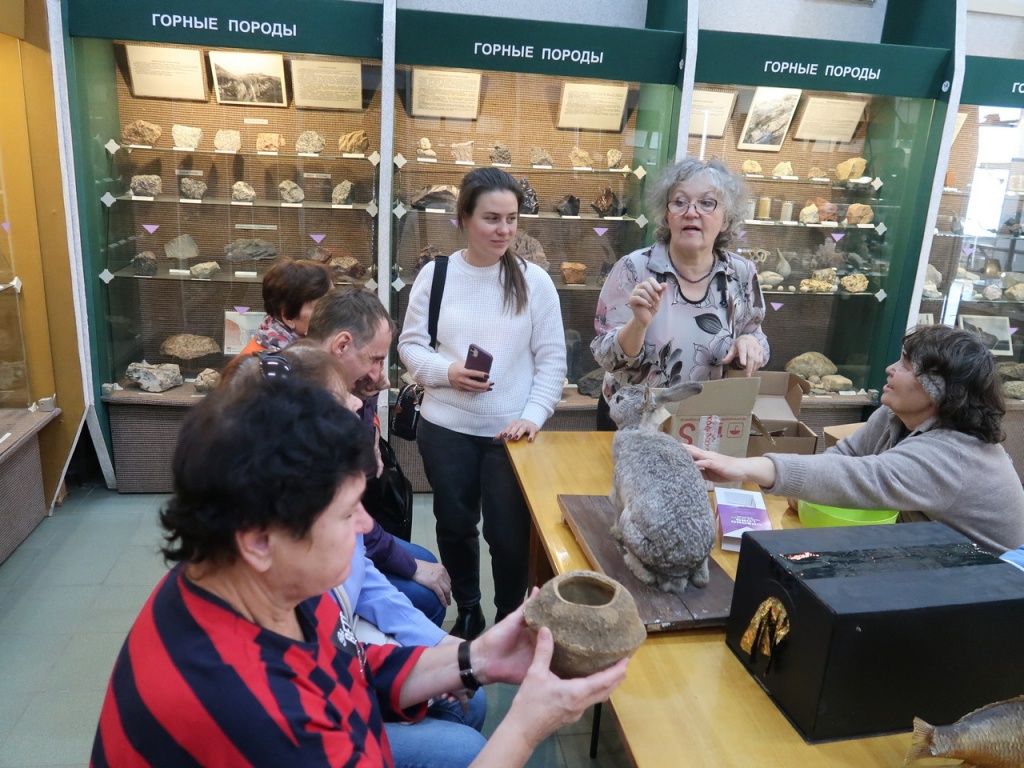16 октября читатели библиотеки для слепых и слабовидящих имени В. Маяковского в очередной раз посетили музей-заповедник, чтобы познакомиться с тактильной экспозицией «Мир природы». Научные сотрудники рассказали много интересных деталей о палеонтологических раскопках и о том, как были найдены скелеты обитавших на территории Ставропольского края южных слонов – Архипа и Нюси (в силу огромных размеров к ним удалось только прикоснуться). Много экспонатов зала природы посетителям удалось взять прямо в руки – различные виды шишек, ракушек, чучела зайца, утки, ёжика, петуха, а также растения, чьи веточки и лепестки имеют свою структуру и текстуру.