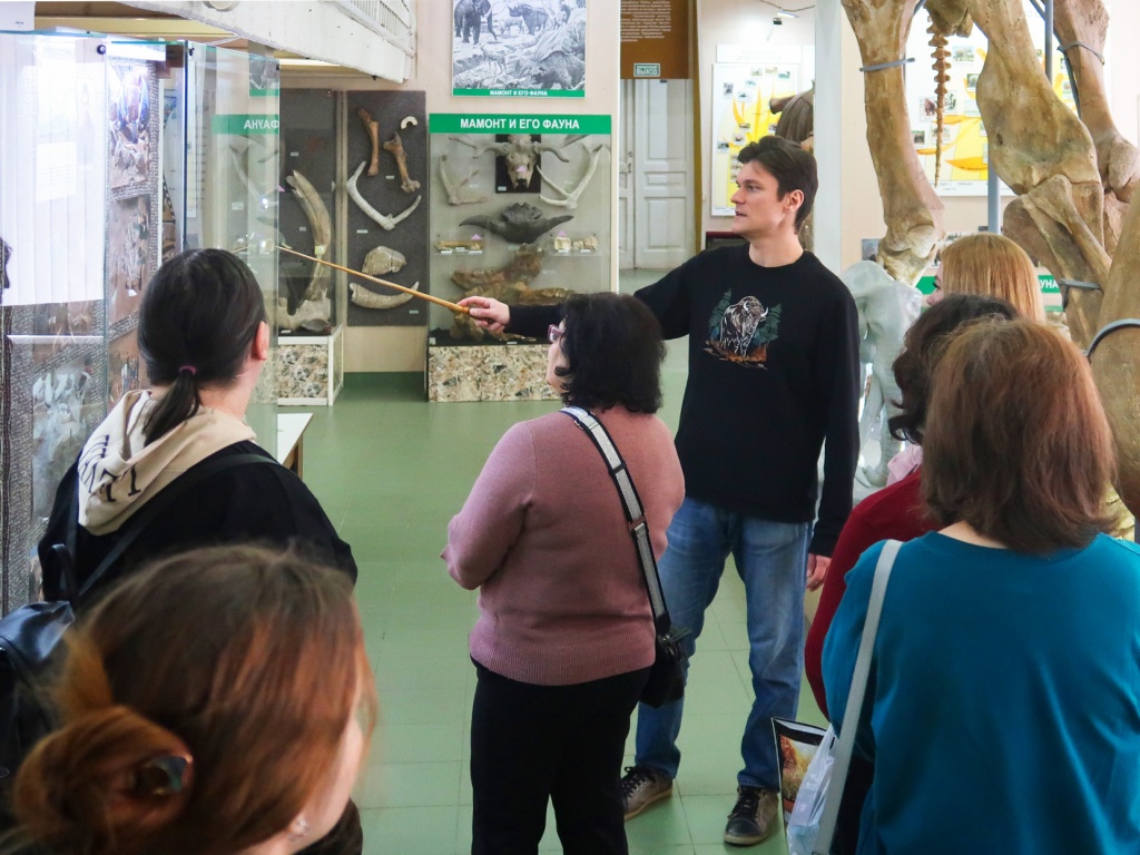 Для посетителей в сопровождении социального работника старший научный сотрудник отдела природы В.В. Волокитин провел тематическую экскурсию «Природа Ставропольского края». Гости узнали, как формировалась и развивалась фауна Ставрополья за миллионы лет, познакомились с богатой палеонтологической коллекцией музея, увидели знаменитые скелеты южных слонов, ископаемого кита, носорога эласмотерия, лошади гиппариона и других.