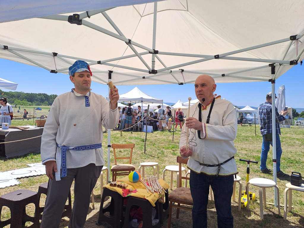 В ходе сюжетно-интеллектуальной игры «Кукольный сказ: от лоскутка к истории» и мастер-класса «Кукла-кувадка» все желающие узнали много интересного из истории народной игрушки и смогли создать ее собственными руками. На локации «Искусство движения в дереве» гости фестиваля познакомились с богородской деревянной динамической игрушкой, а на площадке «Этнографические загадки» – с предметами быта из этнографической коллекции музея: коромыслом, рубелем, чугунком, каталкой, старинным утюгом, веретеном, маслобойкой.