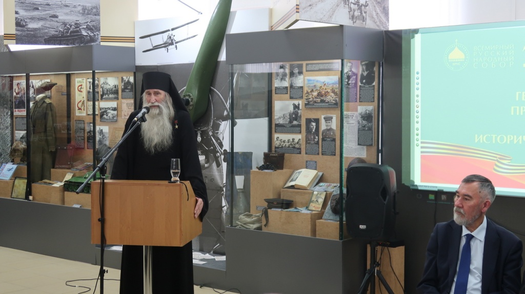 Полковник запаса, Герой Советского Союза, член наблюдательного совета Государственного фонда «Защитники Отечества», монах Киприан (Бурков) поделился опытом общения с различными военными в зоне СВО, говорил о сохранении исторической памяти и исторической правды, о важности патриотического воспитания молодежи.