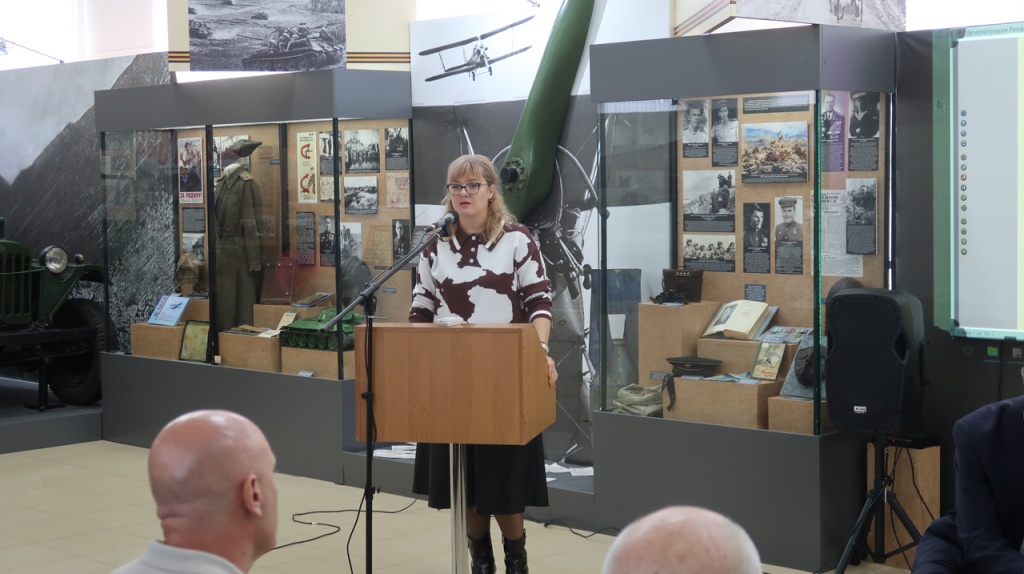 Старший научный сотрудник отдела истории Ставропольского государственного музея-заповедника, кандидат философских наук А.С. Кудрина в своем докладе поделилась опытом работы музея по сохранению памяти о событиях и участниках специальной военной операции.