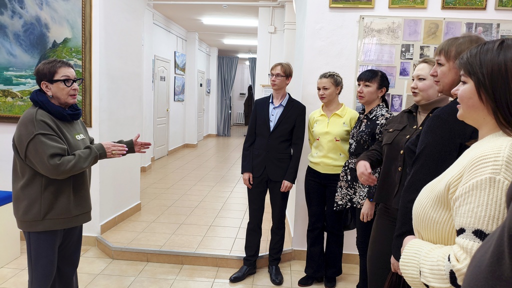 13 февраля 2026 года в рамках сотрудничества с Центром профессиональной переподготовки и повышения квалификации работников культуры г. Ставрополя в картинной галерее прошла обзорная экскурсия для преподавателей творческих дисциплин (живопись, музыка, хореография) детских школ искусств г. Антрацита и Антрацитовского района ЛНР.