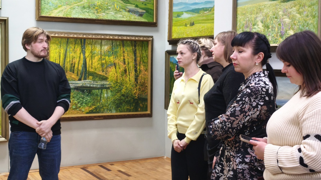 13 февраля участники курсов повышения квалификации познакомились с подлинными произведениями известного ставропольского пейзажиста. В рамках обзорной экскурсии зрители погрузились в разные десятилетия: от конца 1940-х до начала 2000-х, увидели летние виды Ставрополья, осенние пейзажи седого Кавказа, могучее раздолье байкальских вод и многое другое.