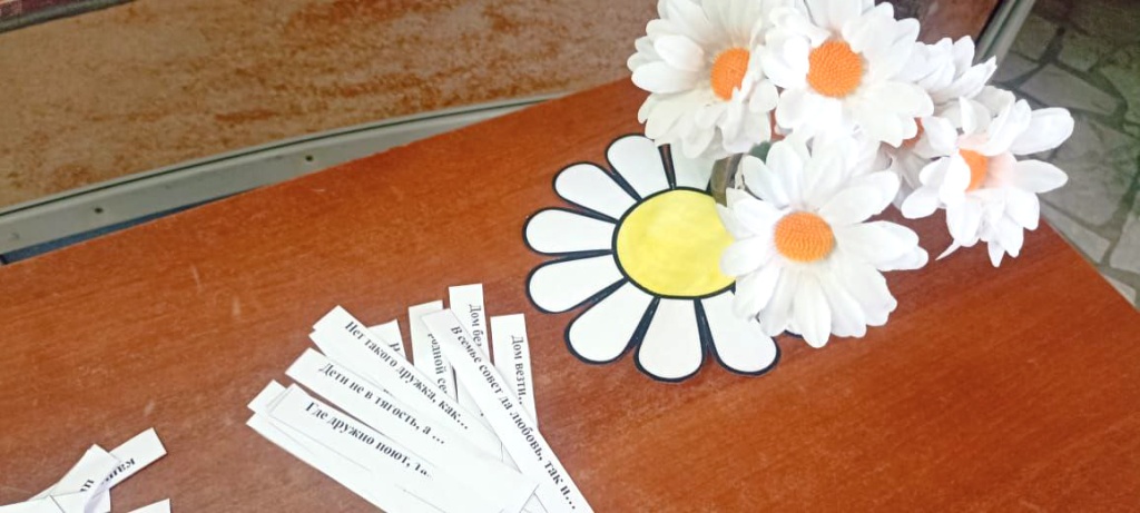 Есть у этого праздника замечательный символ – цветок ромашка. Он символизирует нежность, простоту, чистоту, тепло, уют и добро. В ромашке много лепестков, как будто большая дружная семья собралась за круглым столом! На память о празднике посетители сделали большую ромашку, на лепестках которой написали самые важные и нужные слова.
