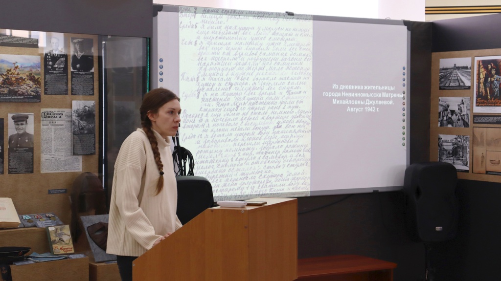 Программа мероприятия включила лекцию, презентацию и тематическую экскурсию «Ставрополье в период оккупации» по экспозиции зала истории.