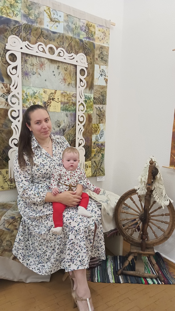 Главная точка притяжения выставки – фотозона экспоната «Травушки-муравушки». Это настоящая русская сказка: панно в технике свободной росписи, украшенное резным наличником, а возле него старинное веретено, пена кружев и деревенские самотканые коврики. Гости открытия и посетители галереи уже не единожды сделали атмосферные кадры на память.