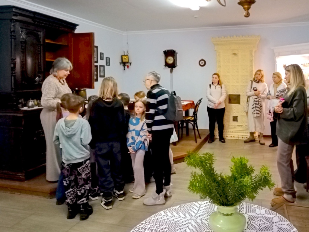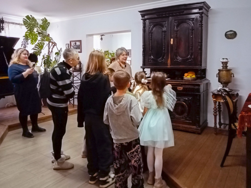 Для группы «Расту в музее» провели экскурсию по экспозиции и рассказали о роли мамы в многодетной семье художника В.И. Смирнова, ее занятиях. Затем дети вместе с мамами и бабушками приняли участие в старинной игре «Художник». После того, как были названы все краски, ребята составили палитру и поделили краски по температуре.