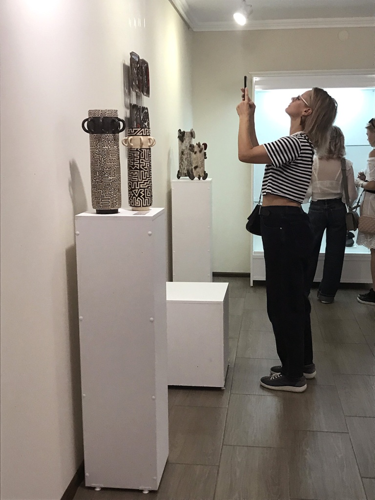 С первой авторской выставкой молодых керамистов пришли поздравить преподаватели Ставропольского краевого художественного училища, которое Александра и Анна окончили всего год назад. Их учителя – скульптор И.А. Кисличенко, живописцы А.В. Сытников и П.П. Охрименко – провели разбор представленных в экспозиции работ и высказали немало заслуженных похвал. Заместитель директора училища по учебной работе А.В. Филимонова отметила, что в последнее время интерес к декоративно-прикладному искусству заметно возрос, студенты отделения ДПИ получили новые мастерские и оборудование, выпускники демонстрируют все более высокий уровень, что и показывают работы А. Владыкиной и А. Денежко.