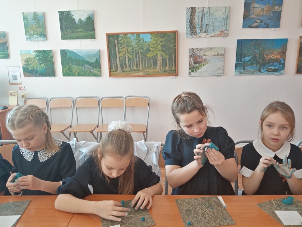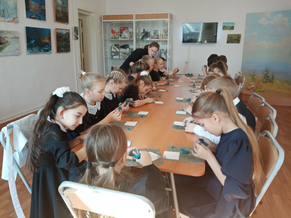 Участники мероприятия посмотрели фильм о Татарском городище, затем для них был проведен мастер- класс по изготовлению бусин в форме уточек из папье-маше.